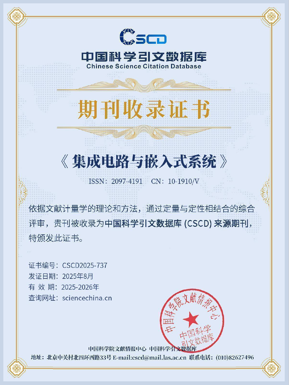 《集成电路与嵌入式系统》主要刊载与集成电路和嵌入式系统相关的综述和学术论文,具体涵盖电路与系统理论及技术、大规模集成电路设计与制造、嵌入式与系统优化、混沌与非线性电路、传感器与物联网、信号与信息处理系统等方面。